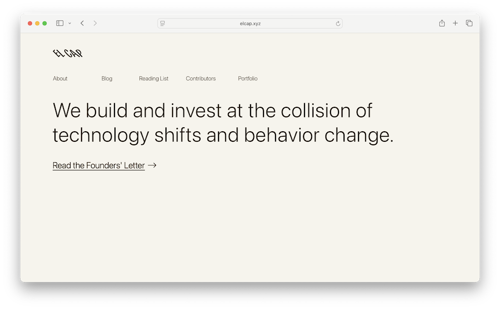 ElCap.xyz is the online home of El Cap Holdings, an early-stage venture capital firm. According to the website, El Cap “builds and invests where technology shifts and human behavior change collide.” Since its founding in 2019, the firm has focused on partnering with founders at the earliest stages and has invested across AI, developer tools, web3, climate, and software. The partners describe themselves as “builders first,” aiming to help founders move faster and navigate inflection points in emerging industries.