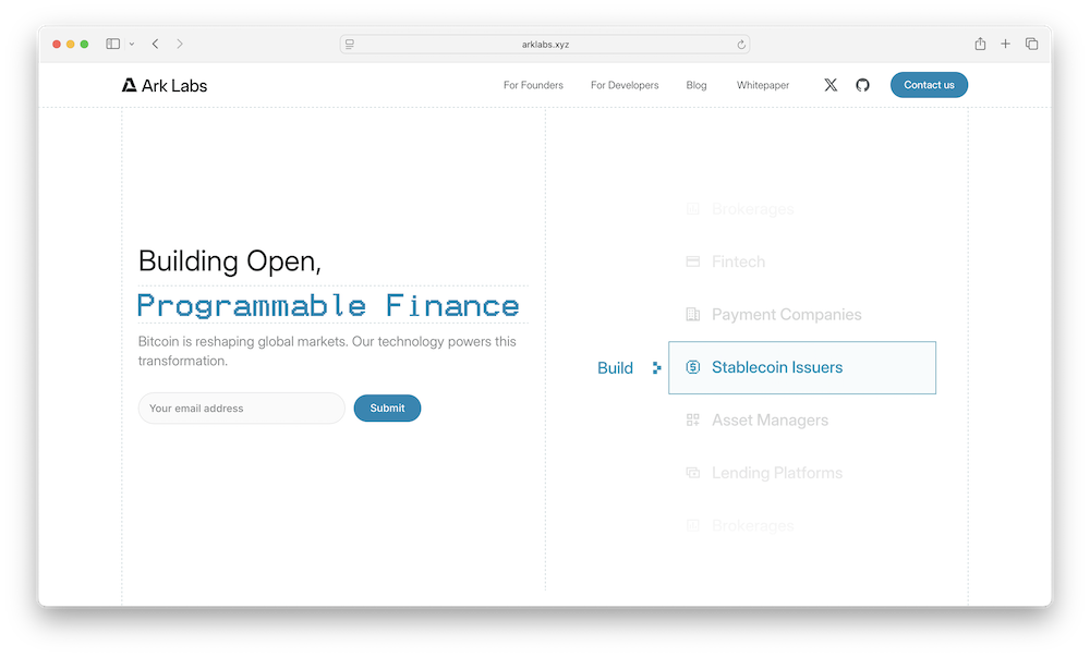 ArkLabs.xyz is the online home of Ark Labs, a company building infrastructure for programmable finance on Bitcoin. According to its website, the platform is designed to support financial applications such as payments, escrow, and asset management using Bitcoin and stablecoins. Its core technology focuses on enabling offchain transaction execution while maintaining the ability to settle on Bitcoin. In March 2026, Ark Labs raised a $5.2M seed round led by Tether, a company that issues the USDT stablecoin. Additional participants included Ego Death Capital, Epoch VC, Lion26, Sats Ventures, and Ralph Ho, former VP of Finance at PayPal.1
