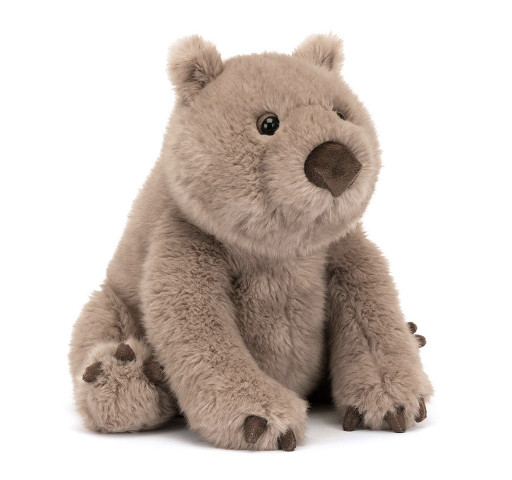 The website lists a range of products across baby clothing, gear, and accessories. One example from the stroller accessories category is the Baby Jogger City Select 2 Second Seat Kit in Radiant Slate. The product listing describes the item as a sibling seat accessory designed for the Baby Jogger City Select 2 stroller system. Another example from the toys category is the Jellycat Wonda Wombat, listed under plush toys. The product description states that Wonda Wombat features soft two-tone fur, a chocolate drop suedette nose, long limbs with suedette claws, and a small bobtail. The description adds that the plush wombat “may be nocturnal, but she is always ready for a cuddle.” From the baby clothing collection, Blossom.Baby lists the Angel Dear Flower Ducklings Bamboo Viscose Smocked Peter Pan Snap Footie. According to the product page, the garment is available in sizes ranging from newborn to 6–9 months.