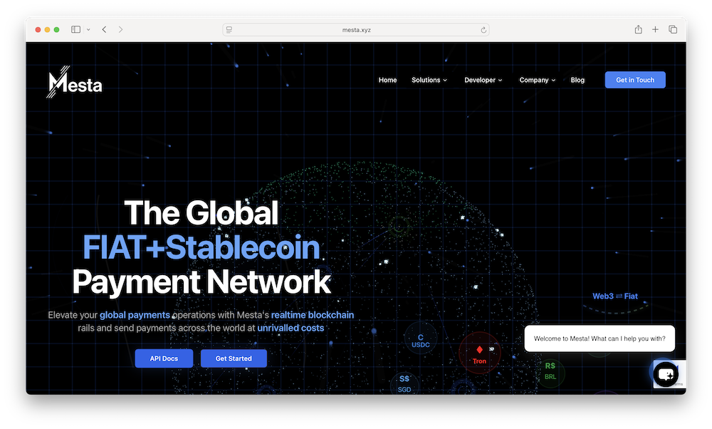 Mesta.xyz is the online home of Mesta, a payments infrastructure startup founded to improve the speed and cost of international transactions through a hybrid model that integrates fiat and stablecoin rails. According to the company, businesses can send U.S. dollars and stablecoins to more than 50 currencies, cut payment costs by at least 50 percent, and complete settlements in near real time. Mesta’s network includes built-in Know Your Business (KYB) and monitoring systems designed to help payment providers and fintechs stay compliant while sending money across borders. In October 2025, Mesta reported a $5.5M seed round led by Village Global with participation from Circle Ventures, Paxos, WTI, and other investors to expand its reach and enhance its technology.1