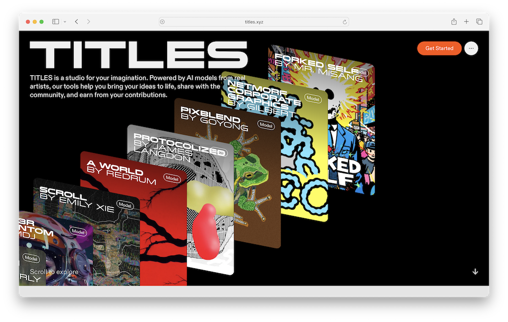 TITLES.xyz is the online home of TITLES, a creative technology platform that builds tools powered by artist-trained AI models. According to the company’s website, TITLES is designed to help artists and IP holders define, share, and monetize their creative perspective through AI while retaining attribution. The platform centers on custom models trained by artists on their own work, rather than on generalized datasets.