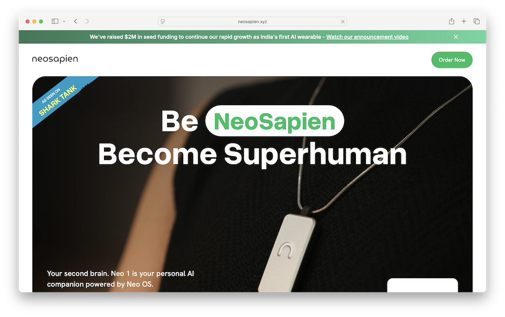 NeoSapien.xyz是NeoSapien的官方网站。NeoSapien是一家总部位于印度班加罗尔的科技公司,致力于开发人工智能原生的可穿戴设备,并将其设计为个人人工智能助手。公司的旗舰产品Neo 1被定位为“第二大脑”,能够实时捕捉并整理超过100种语言的对话和行为。2025年1月,该公司在印度版创智赢家第四季中获得800万印度卢比投资,由纳米塔·塔帕尔领投,此信息由《印度企业家》报道。12025年12月,这家初创公司又完成了200万美元的种子轮融资,本轮由梅拉克创投领投,多位天使投资人参与,包括阿韦斯·艾哈迈德、阿努帕姆·米塔尔、萨米尔·梅塔、纳米塔·塔帕尔以及阿普拉梅亚·拉达克里希纳。2